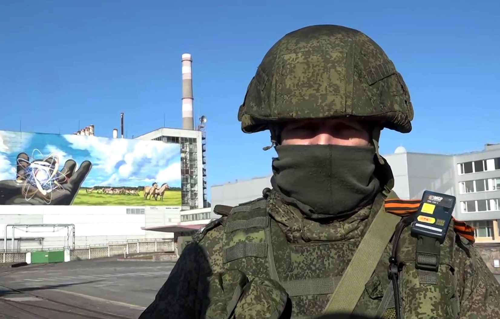 Ein Angehöriger der russischen Streitkräfte im Einsatz am Kernkraftwerk Tschernobyl (2022)