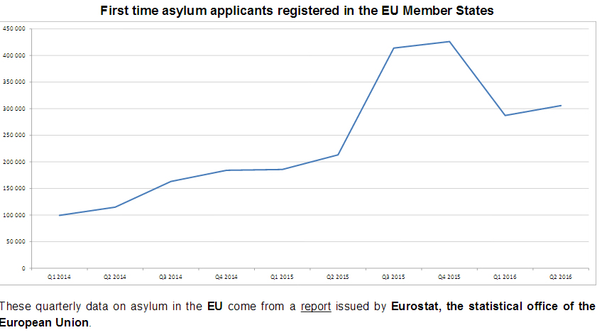 Zurück zu EU: Leichter Anstieg der Zahl der erstmaligen Asylbewerber im zweiten Quartal 2016 auf knapp 306 000 - 6 von 10 Asylbewerber in der BRD
