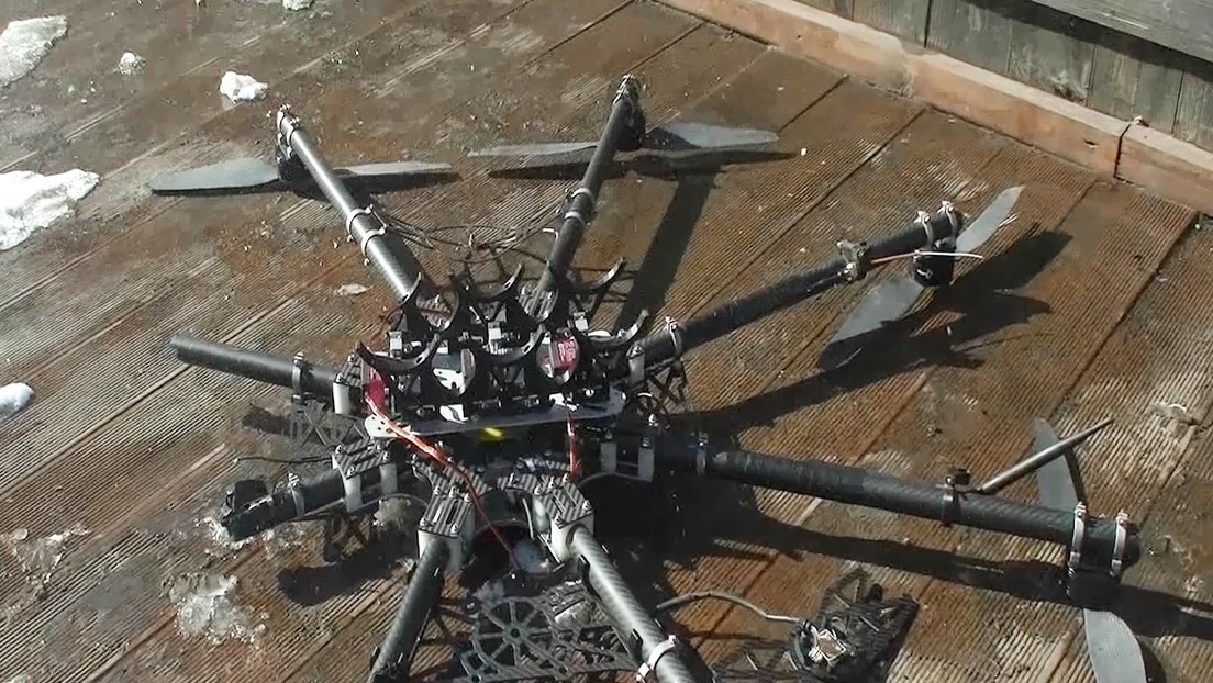 Archivbild: Eine abgeschossene ukrainische Drohne. Bild: Pressedienst des russischen Verteidigungsministeriums / Sputnik
