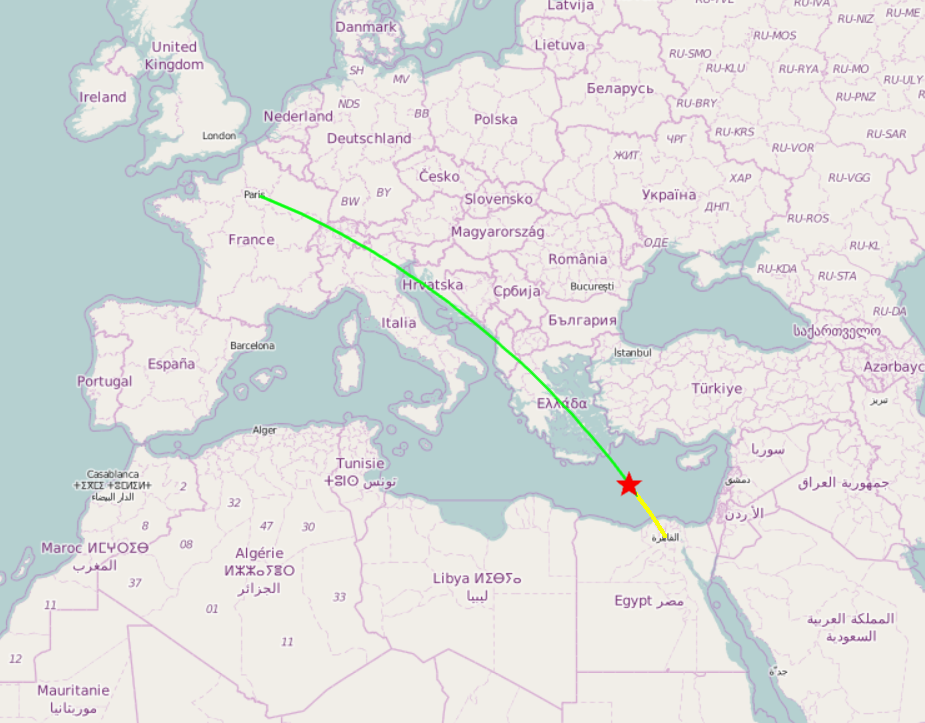 Flugroute von EgyptAir Flug 804