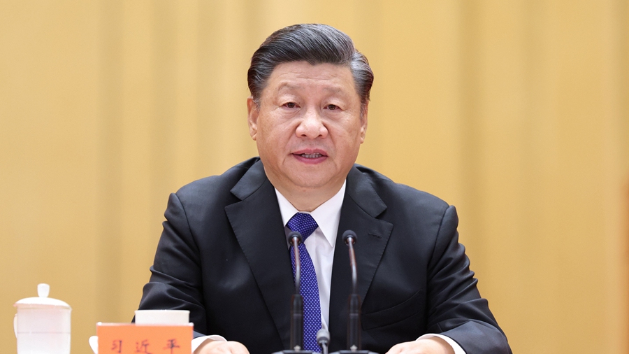 Chinese President Xi Jinping delivers a speech at a commemorative meeting marking the 110th anniversary of the 1911 Revolution at the Great Hall of the People in Beijing, October 9, 2021. Bild: Xinhua