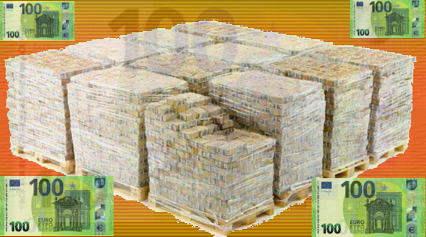 Größenvergleich: Das ist eine Milliarde Euro in 100 Euro-Scheinen. Um dies zu erwirtschaften müßte ein durchschnittlicher Arbeiter 92.000 Jahre arbeiten.