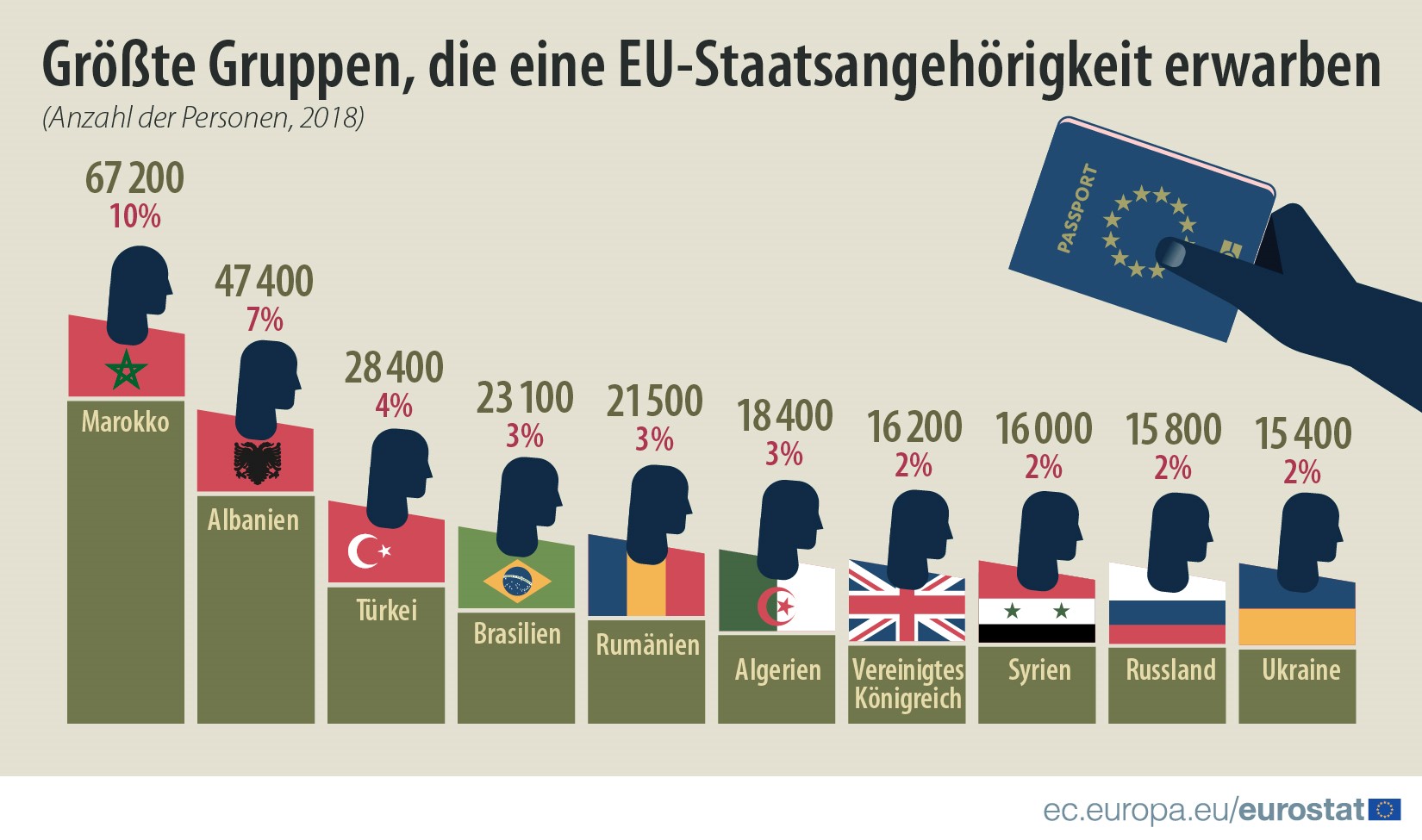 Zurück zu EU-Mitgliedstaaten erteilten im Jahr 2018 mehr als 670 000 Personen die Staatsangehörigkeit