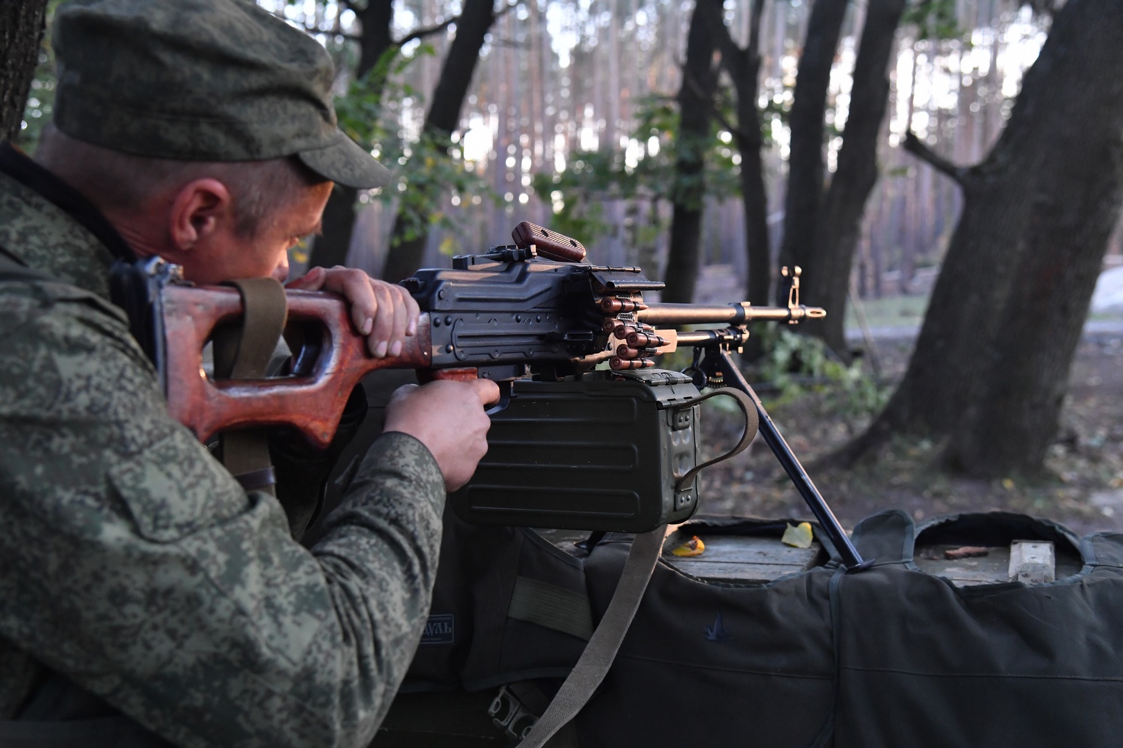 Auf dem Bild: Ein Schütze der Einheit "Bars-16" ("Kuban") am Rande der Stadt Krasny Liman in der Volksrepublik Donezk, 19. September 2022. Bild: WIKTOR ANTONJUK / Sputnik