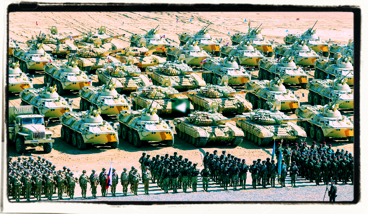 Russische, kasachische und weißrussische Militärangehörige während der Militärübungen in Tadschikistan.