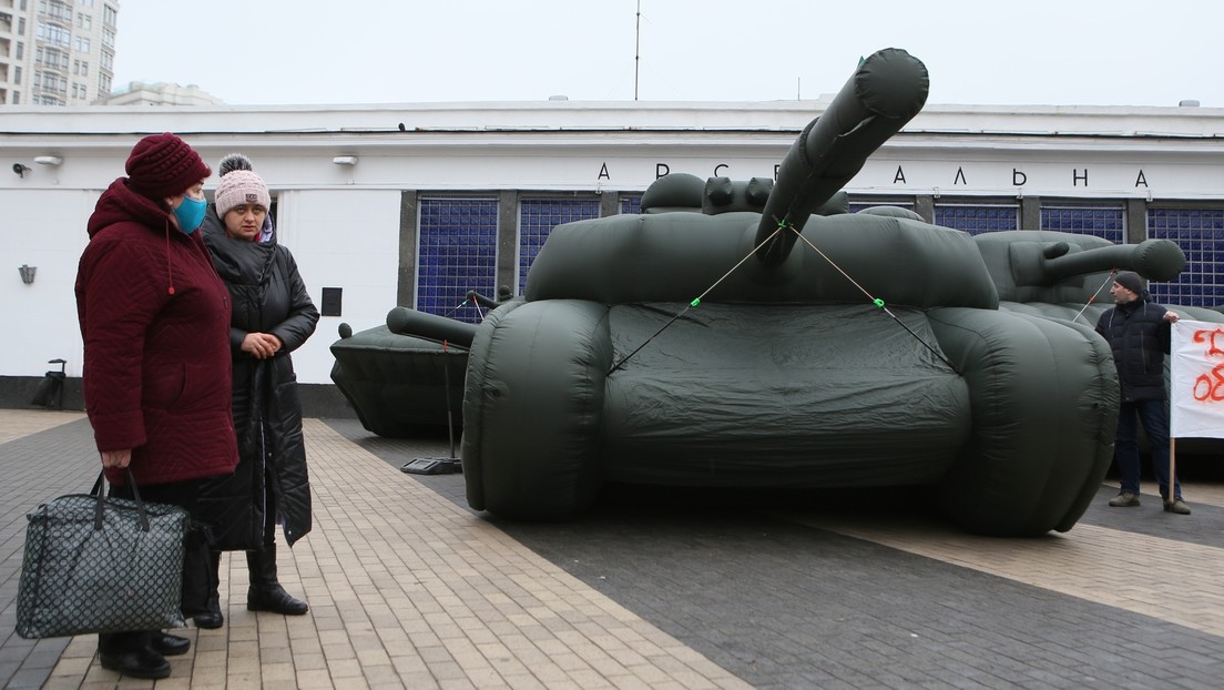 Aufblasbarer Panzer in der Nähe der U-Bahn-Station Arsenalnaja in Kiew Bild: Stringer / Sputnik