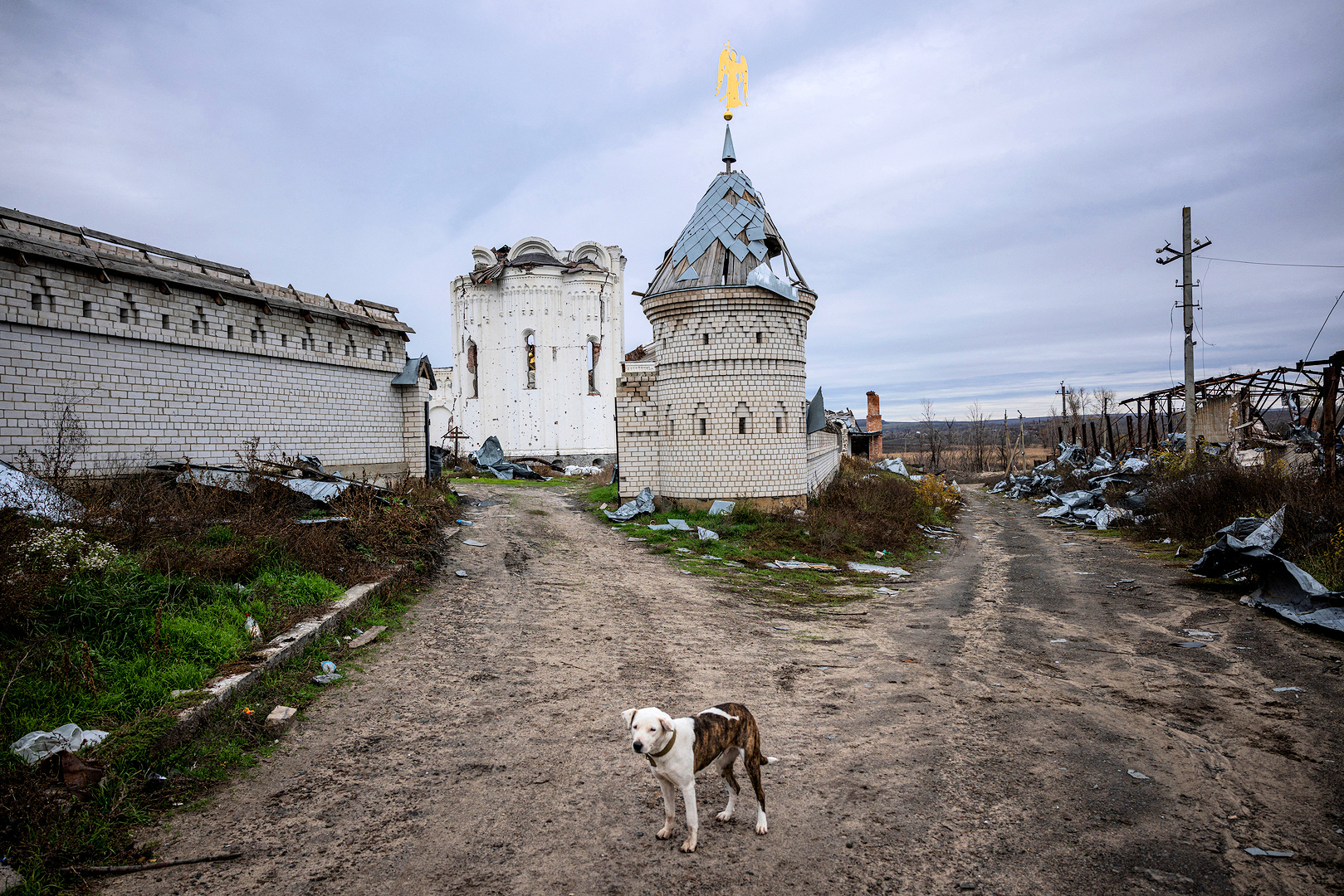 Zerstörte Kirche in der Volksrepublik Donezk