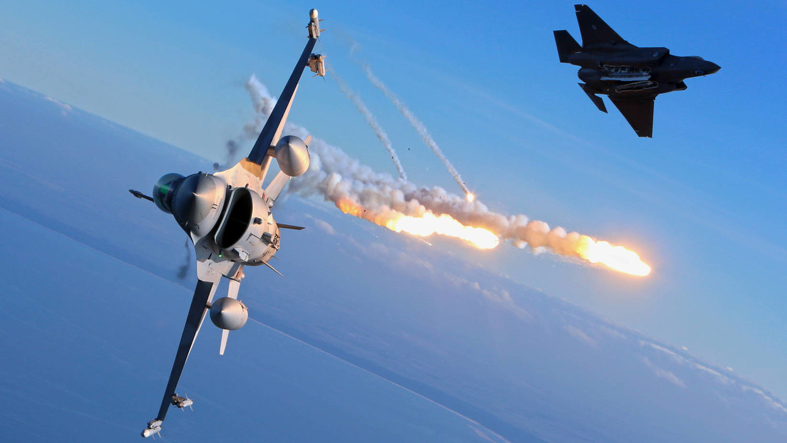 Kampfflugzeuge vom Typ Lockheed Martin F-35A Lighting II (oben rechts) und Lockheed Martin F-16 Fighting Falcon (Symbolbild) Bild: Legion-media.ru