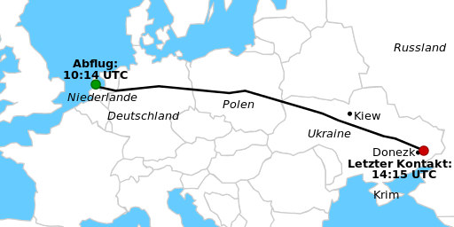 Verlauf des Malaysia-Airlines-Fluges MH-17