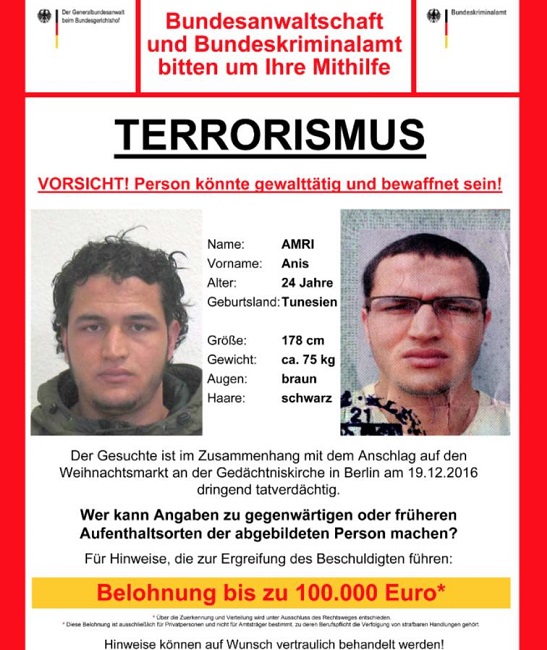 Zurück zu Terroranschlag von Berlin: Öffentliche Fahndung gestartet - 100.000 Euro Belohnung ausgesetzt