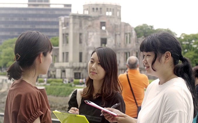 Soka Gakkai members conducting a peace awareness survey in Hiroshima, Japan [Bild: Seikyo Shimbun]
