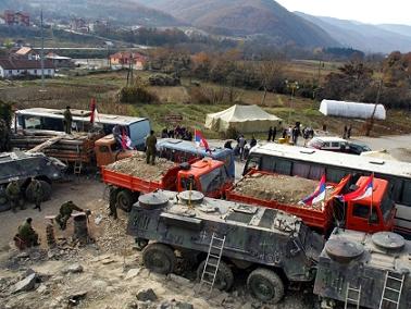Dicht an dicht: Eine der Straßensperren im Nordkosovo. Bild: Bundeswehr / Steffen Maluche