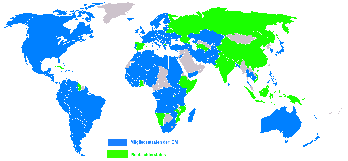 Mitgliedsstaaten der IOM und Staaten mit Beobachterstatus.