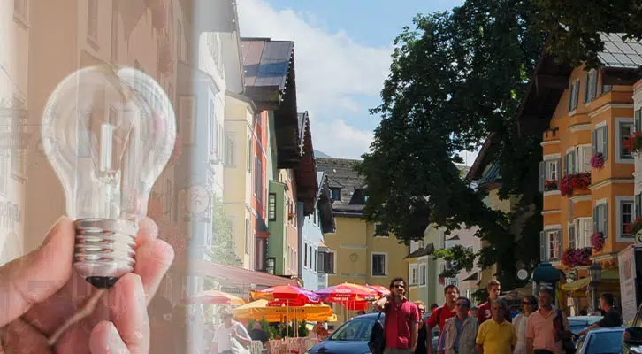 Bild: Kitzbühel: Wolfgang Glock, Wikimedia Commons, CC BY 3.0; Glühbirne: Freepik; Komposition: Wochenblick / Eigenes Werk