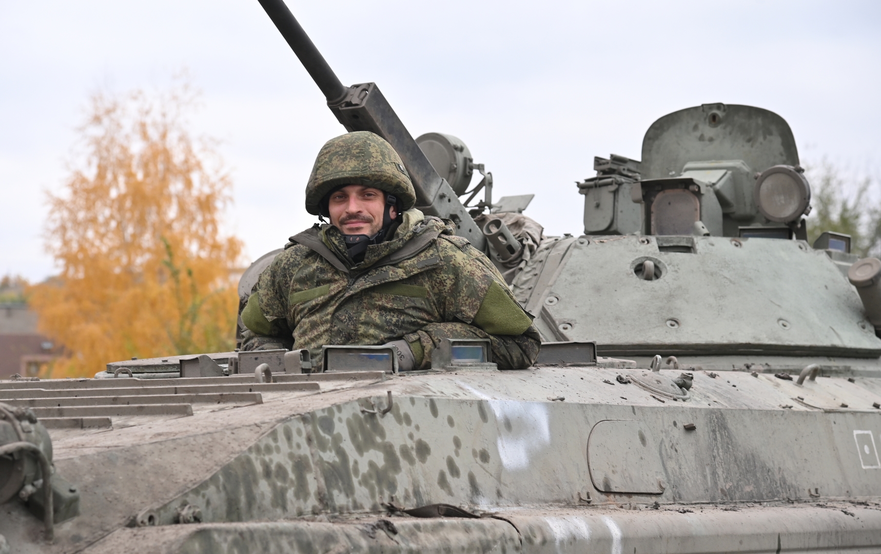 Archivbild: Ein russischer Soldat in einem Schützenpanzer. Bild: Wiktor Antonjuk / Sputnik