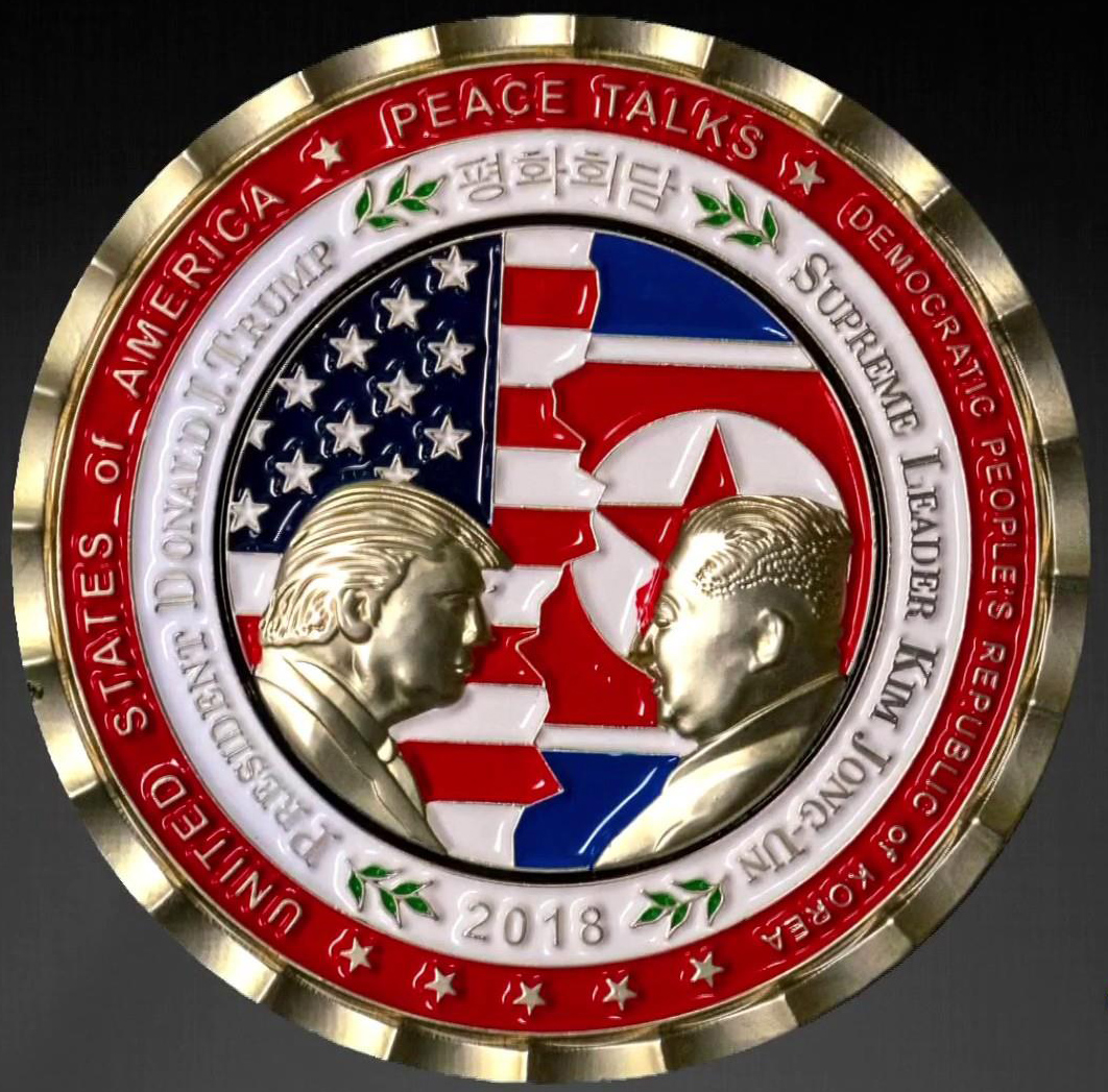 A commemorative coin prepared by the White House Communications Agency for the summit