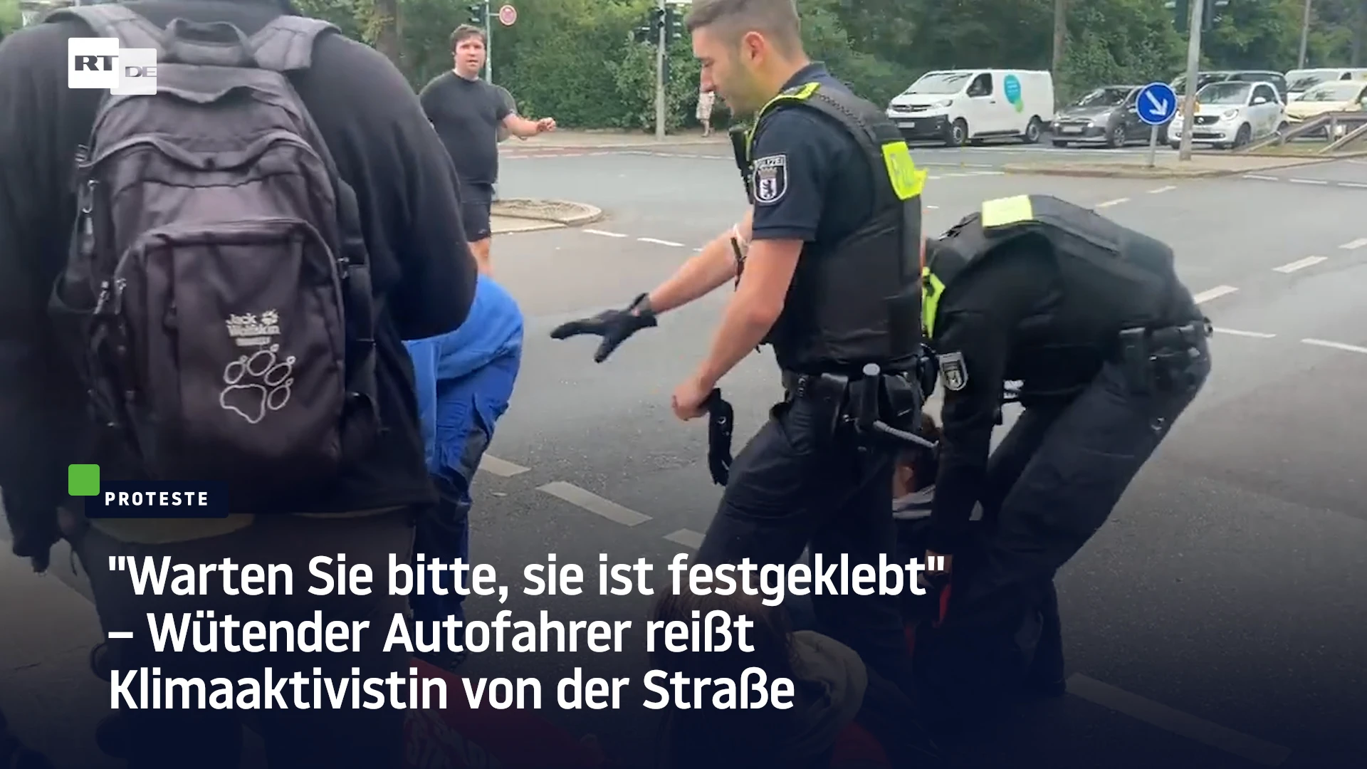 Zurück zu "Warten Sie bitte, sie ist festgeklebt" – Wütender Autofahrer reißt Klimaaktivistin von der Straße