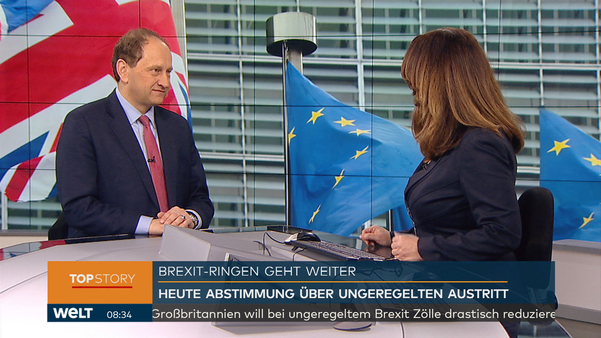 Lambsdorff auf Nachrichtensender WELT: Brexit-Aufschub nur bei zweitem Referendum. Bild: "obs/WELT/WeltN24 GmbH"