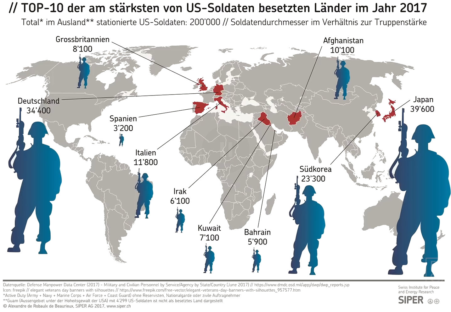 Top-10 der am stärksten von US-Soldaten besetzten Länder im Jahr 2017 (Symbolbild)