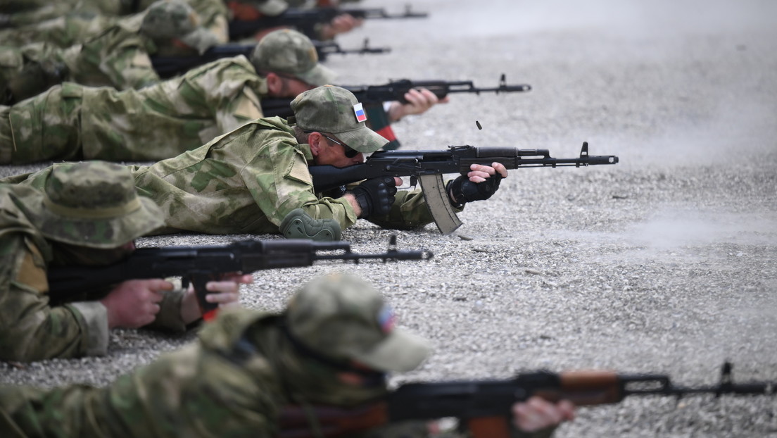 Freiwillige am 19. Juli 2022 bei einer Schießübung im Ausbildungszentrum der Spezialeinsatzkräfte in der Stadt Gudermes