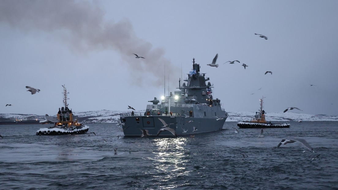 Die Fregatte "Admiral der UdSSR Gorschkow" läuft am 4. Januar 2023 aus dem Heimathafen aus Bild: Sputnik / Pawel Lwow / RIA Nowosti