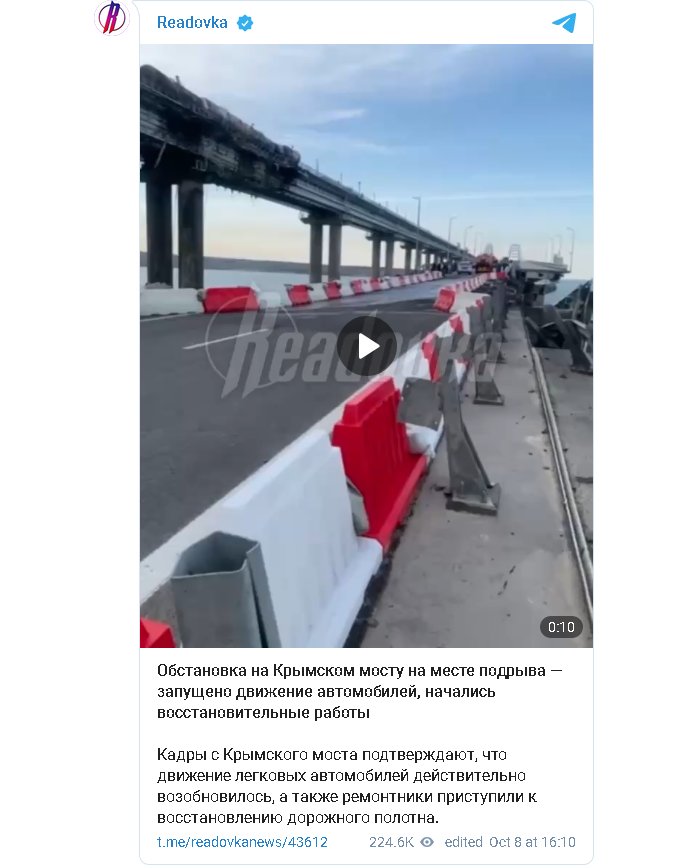 Zurück zu Krim-Chef Axjonow: Straßenverkehr auf Krim-Brücke wiederhergestellt