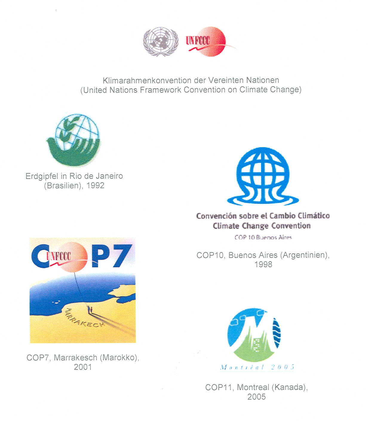 Logos internationaler Klimaschutzkonferenzen