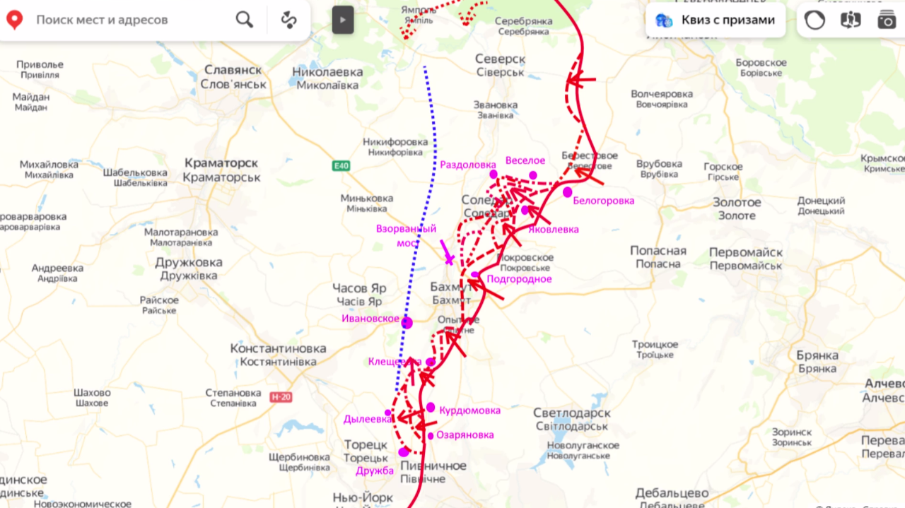 Die Richtungen der derzeitigen russischen Schläge und die nächste ukrainische Verteidigungslinie, laut Podoljaka Bild: Juri Podoljaka