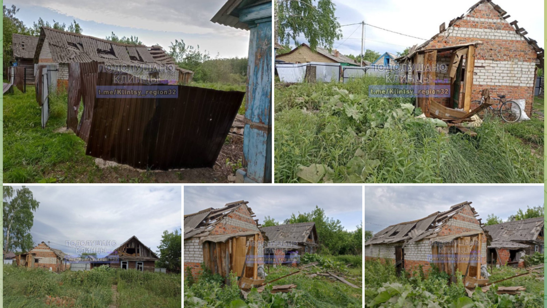 Schäden an Wohnhäusern in der Siedlung Saimischtsche der Stadt Klinzy nach Beschuss mit höchstwahrscheinlich der Gefechtsrakete Totschka-U durch das ukrainische Militär. Russland, 14. Juni 2022)