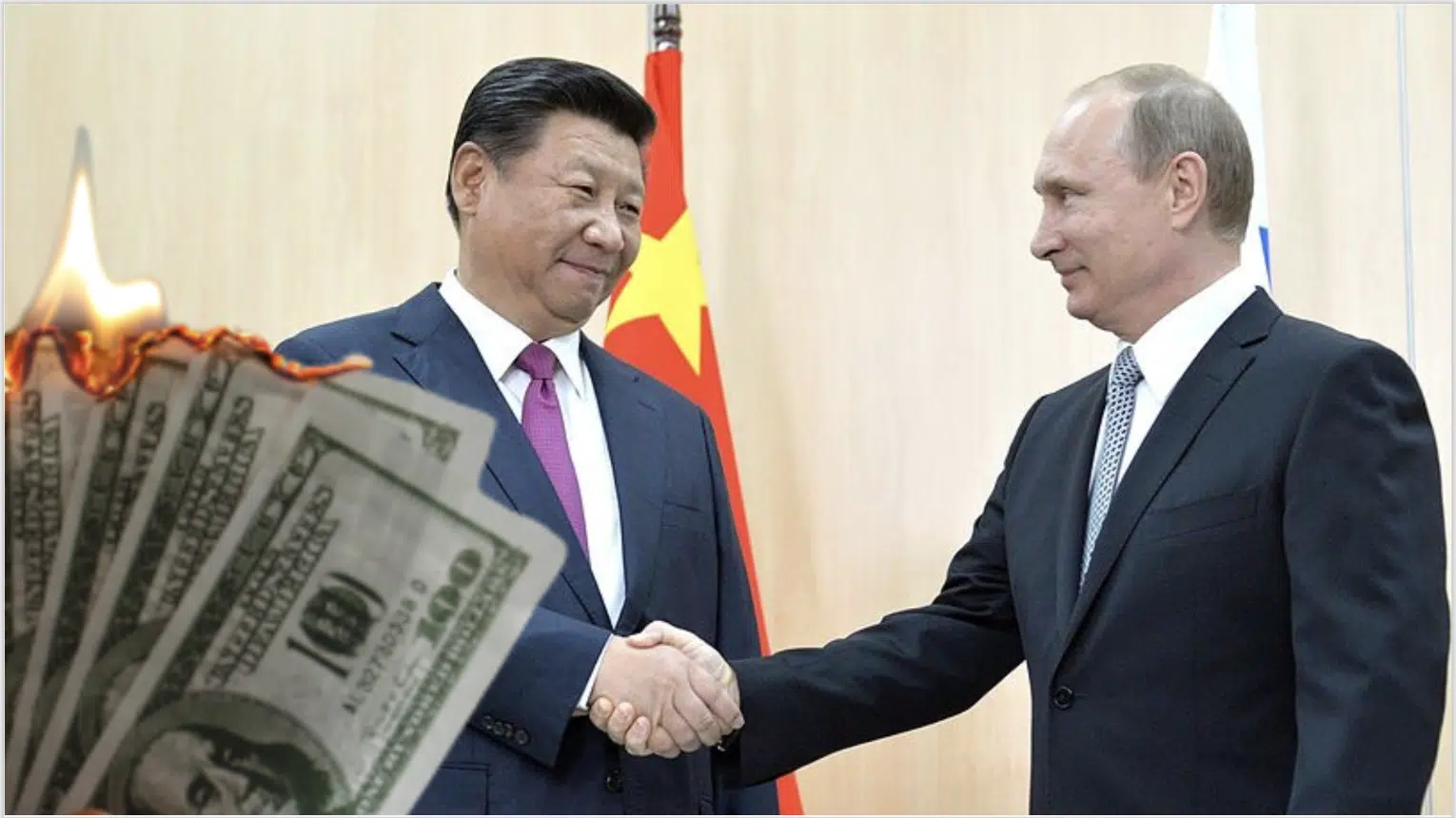 Bild: Dollar: Wikimedia/JP Valery CC BY-SA 4.0; Putin, Jinping: Wikimedia/Kreml CC BY 3.0 / WB / Eigenes Werk