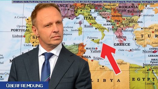 Bild: Ministero delle Politiche Agricole / Wikimedia Commons / CC BY 3.0 IT; freigestellt; Hintergrund: Freepik; Pfeil: Pixabay; Montage: AUF1 / Eigenes Werk