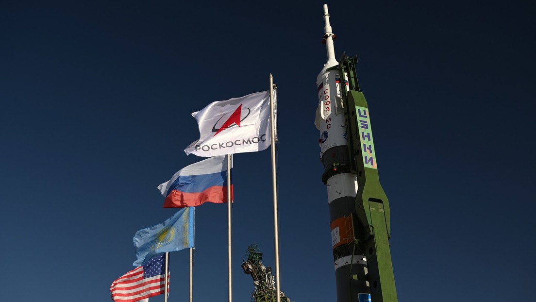 Im Bild: Die Trägerrakete Sojus-2.1a mit dem Raumschiff Sojus MS-22 K. Ziolkowski steht vor dem Start auf dem Weltraumbahnhof Baikonur in Kasachstan auf einer Startrampe. Bild: Sputnik / Maksim Blinov