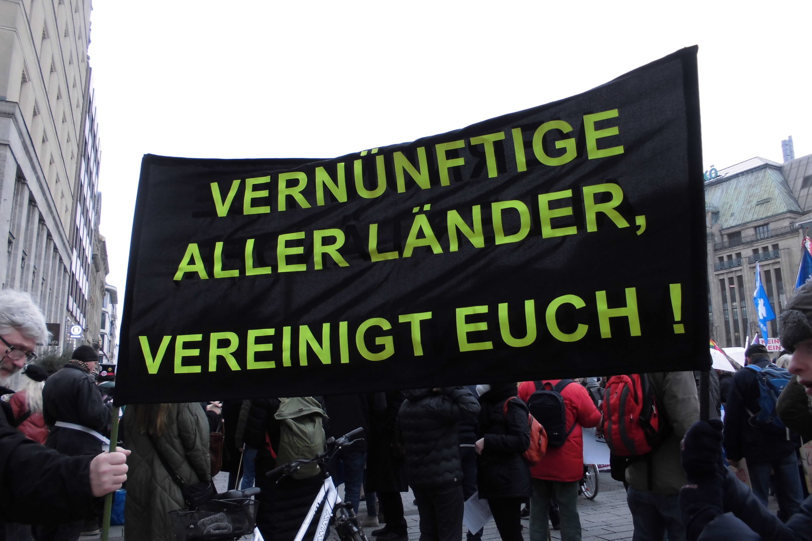 Friedensdemonstration vor Rheinmetall in Düsseldorf (11. Februar 2023) Bild: Felicitas Rabe / RT