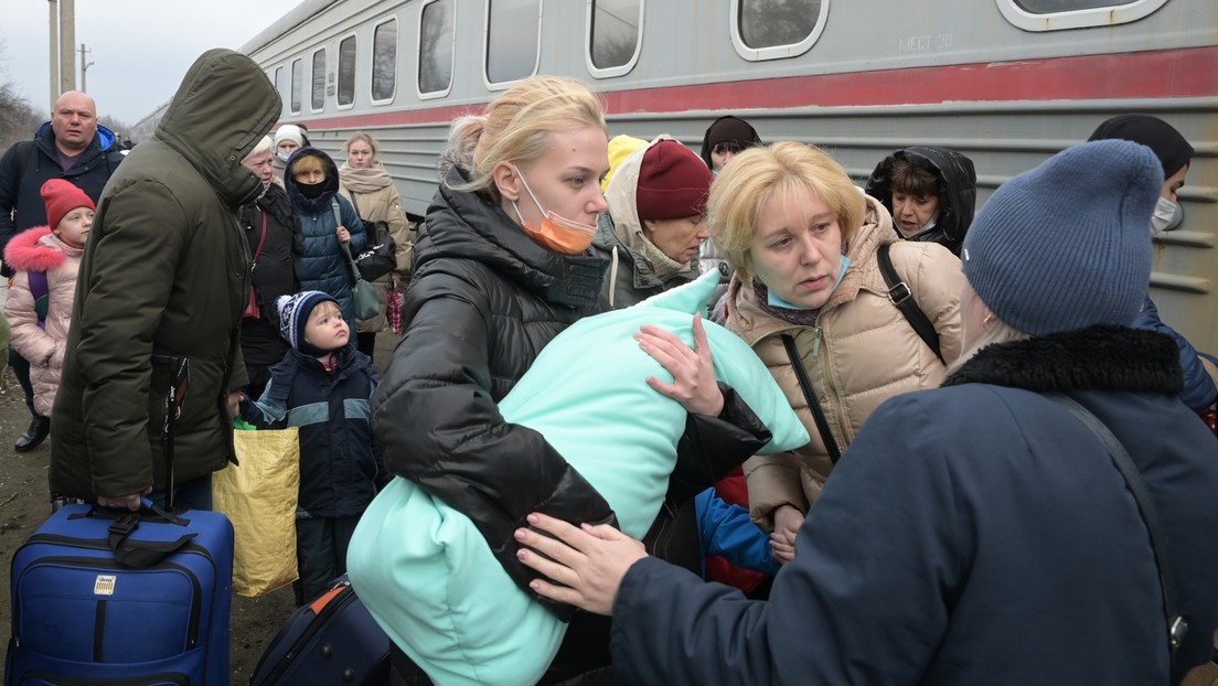 Evakuierug von Familien aus Donezk am 20. Februar 2022. Bild: Sputnik