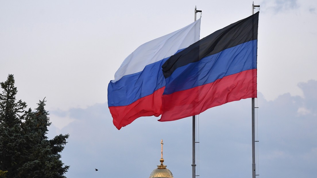 Die russische und die DVR-Flagge (Symbolbild). Bild: Pawel Lisizyn / Sputnik