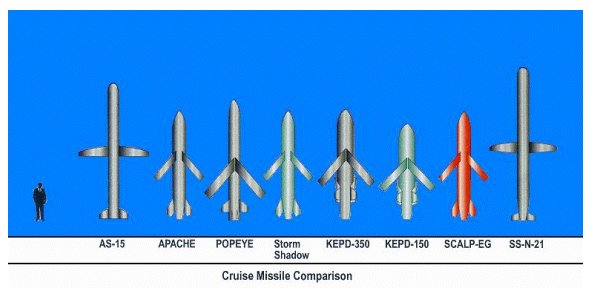 Gänige Marschflugkörper im Größenvergleich