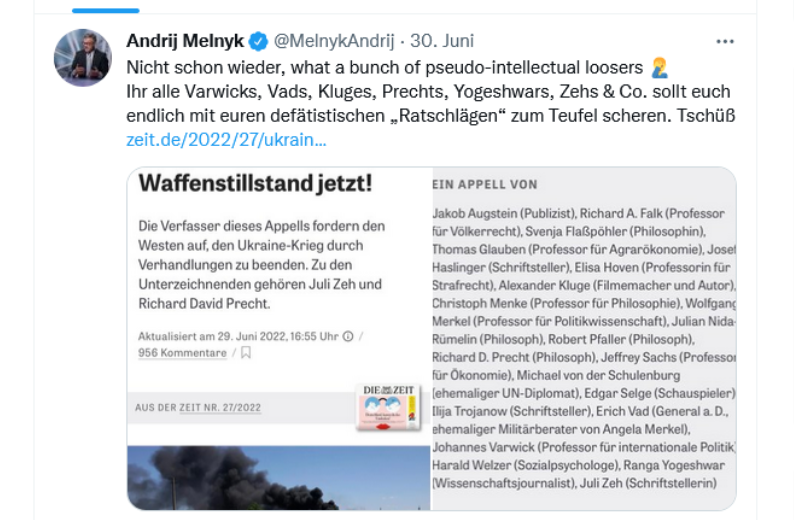 Zurück zu Erneut Ausfälle des ukrainischen Botschafters in Deutschland: „Schert euch zum Teufel“