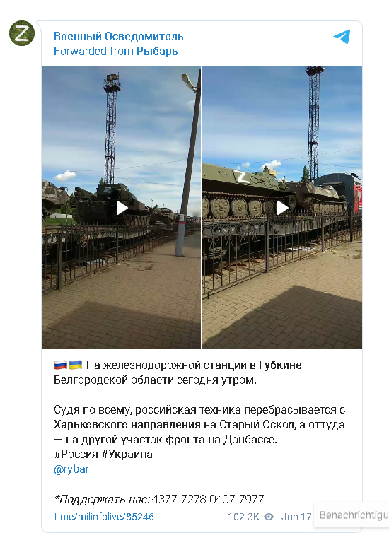 Bild: Screenshot Telegram: "https://t.me/milinfolive/85246" / Eigenes Werk