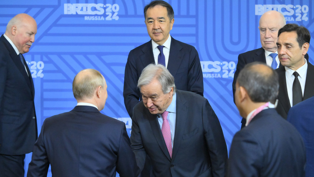 Wladimir Putin und UN-Generalsekretär António Guterres beim Fototermin der BRICS-Staats- und Regierungschefs in Kasan (2024)