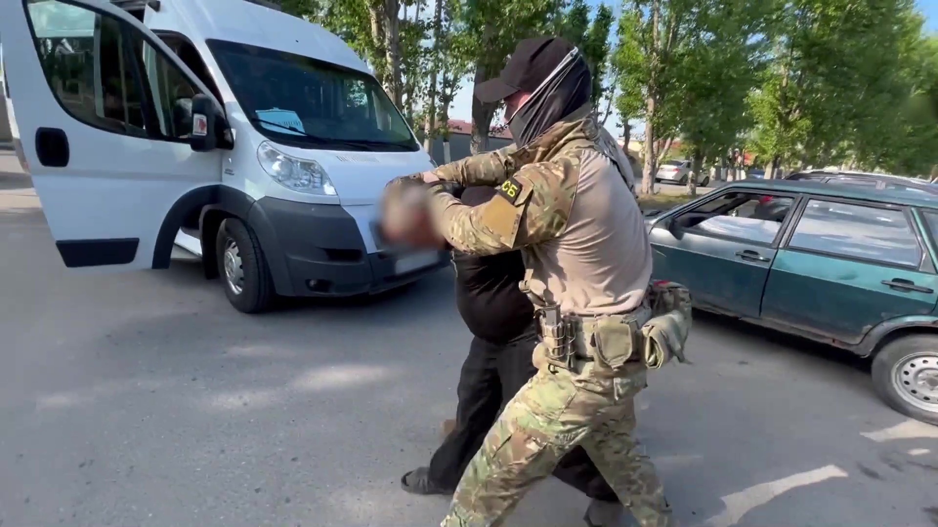 Der russische Inlandsgeheimdienst FSB nimmt in Tjumen einen Mann fest, der einen Offizier zur Fahnenflucht verleiten wollte, 4. Juli 2023. Bild: FSB / Sputnik