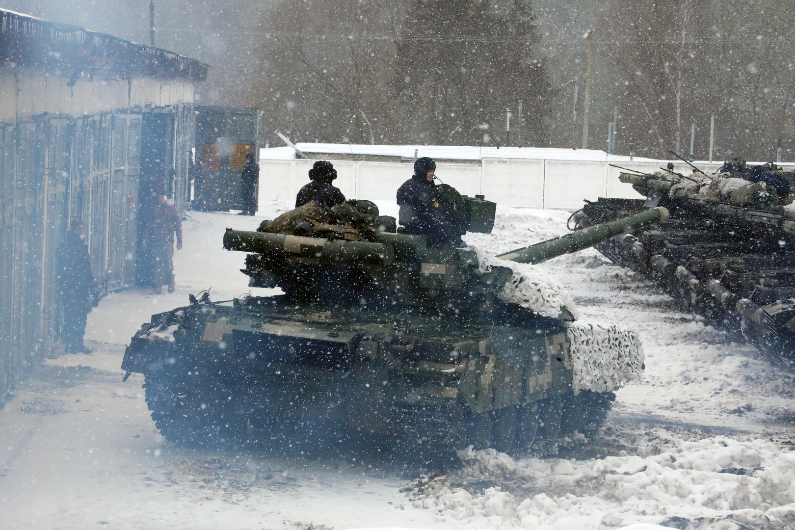 Auf dem Archivbild: Ukrainische Streitkräfte fahren einen Panzer während einer Übung, Gebiet Charkow, 31. Januar 2022 Bild: Vyacheslav Madiyevskyy / Avalon / Legion-media.ru