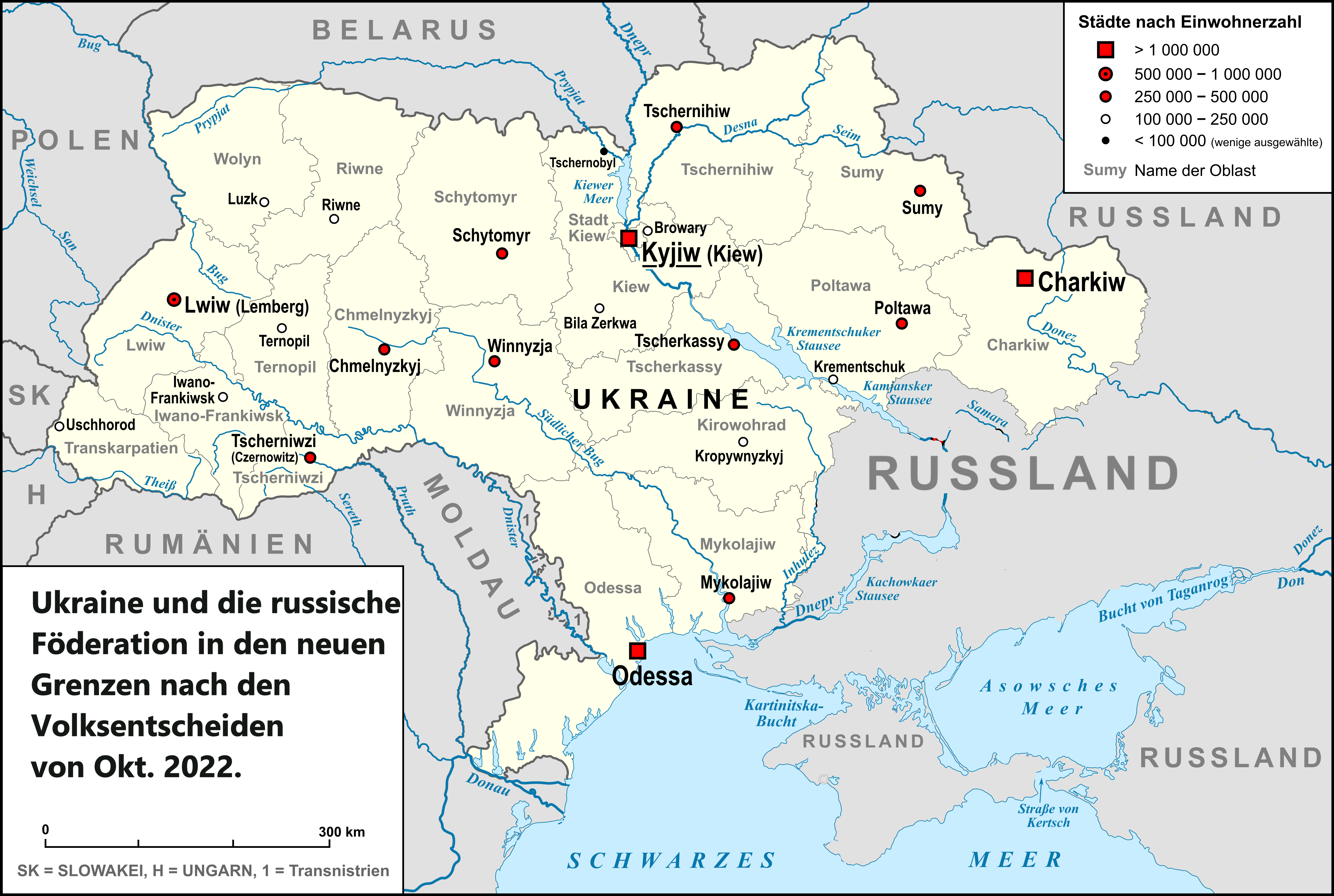 Aktuelle Ukraine Karte in den neuen Grenzen von Oktober 2022.