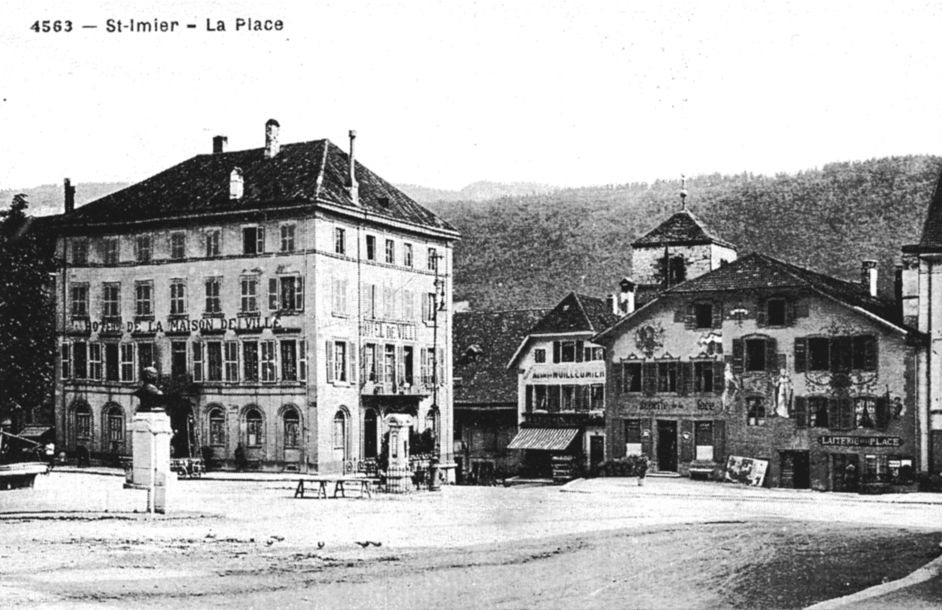 Gründungsort der Antiautoritären Internationale: Hôtel de la maison de Ville in Saint-Imier. Die Herberge wurde später in Hôtel Central umbenannt und in den 2000ern entkernt.