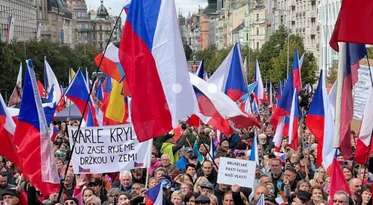 Zurück zu Zehntausende Tschechen demonstrierten gegen NATO und Selbstmord-Sanktionen - Demos auch in Österreich
