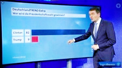 Eine Prognose der deutschen Mainstreammedien zum Wahlausgang der US-Wahlen 2016 (Clinton: 82%, Trump 9%), Symbolbild