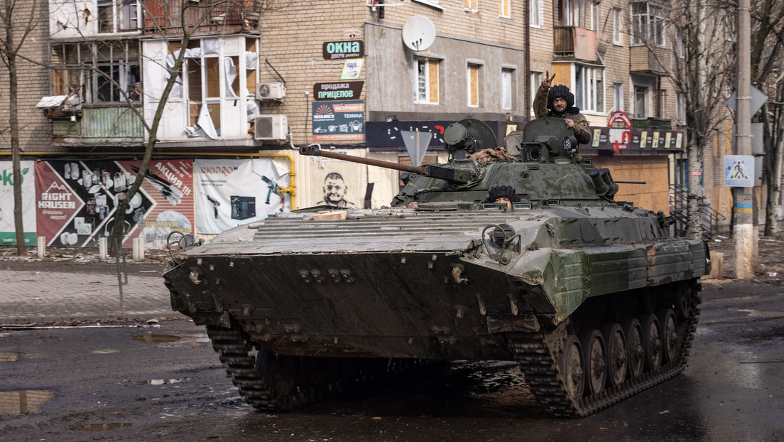 Ukrainischer Panzer mit seiner Besatzung Bild: Gettyimages.ru / Yevhen Titov