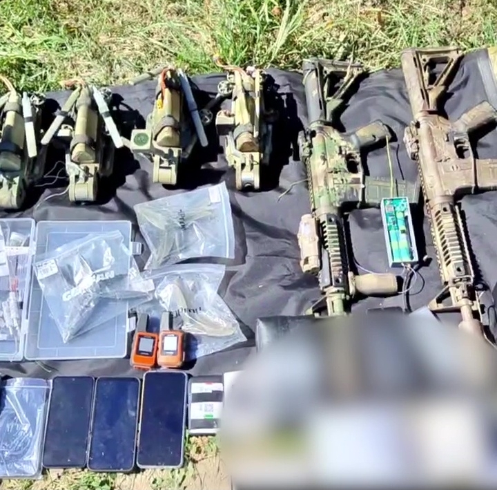 Vom FSB sichergestellte Ausrüstung vierer ukrainischer Terroristen, die im Gebiet Brjansk liquidiert wurden. Stillbild aus Videomaterial. Bild: Pressedienst des Föderalen Sicherheitsdienstes der Russischen Föderation (FSB)) / Sputnik