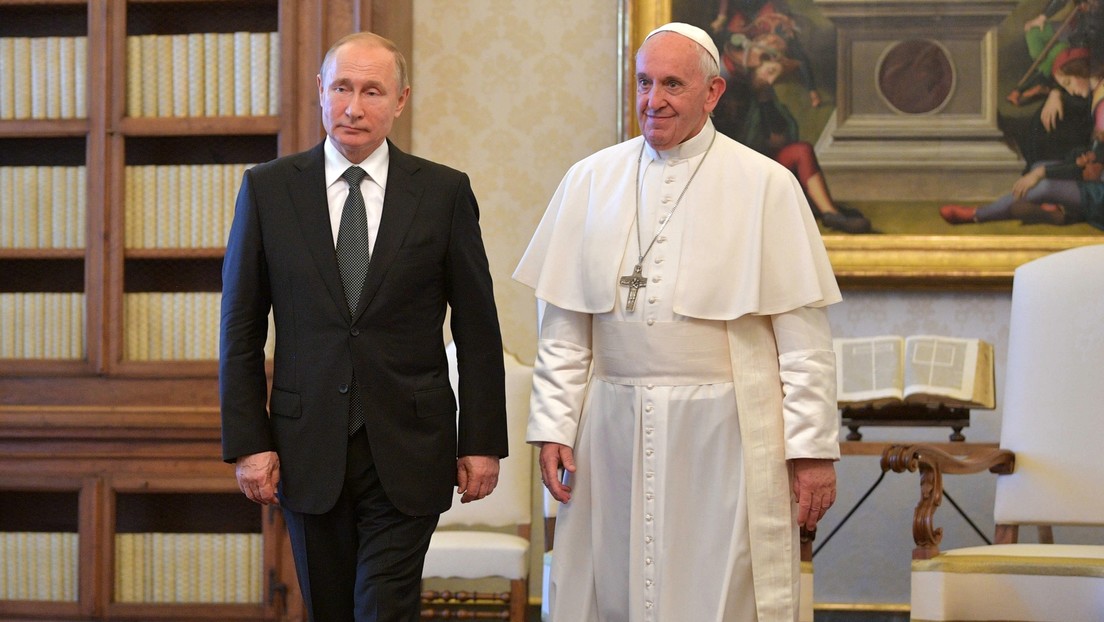 Der russische Präsident Wladimir Putin und Papst Franziskus treffen sich im Vatikan (Archivbild). Bild: Alexei Druschinin / Sputnik