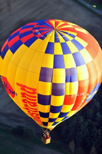 Heißluftballon mit Personen im Korb (Symbolbild)