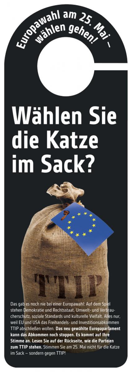 Über 20.000 Campact-Aktive werden diese Türhänger am Samstag vor der Europawahl bundesweit verteilen./ Bild: "obs/Campact e.V."